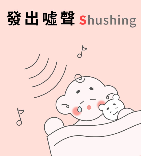 - 發出噓聲 (Shushing):發出單一、平穩、低頻類似白噪音的聲音,模擬寶寶在子宮內聽到的音頻,寶寶會比較安心