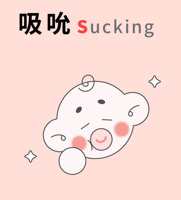 - 吸吮 (Sucking):一歲前的寶寶處於口腔期,親餵是最好的滿足方式,也可以用奶嘴輔助,當寶寶的需求被滿足,安全感也會跟著提升