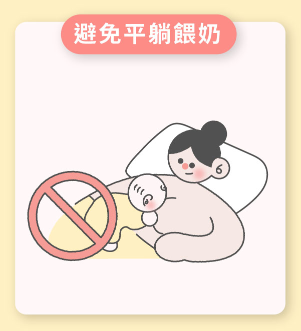 - 調整含乳姿勢,避免平躺餵奶
