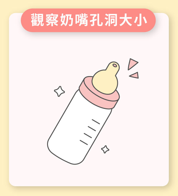 - 觀察奶嘴孔洞大小是否適合寶寶,過大或過小都可能造成寶寶打嗝