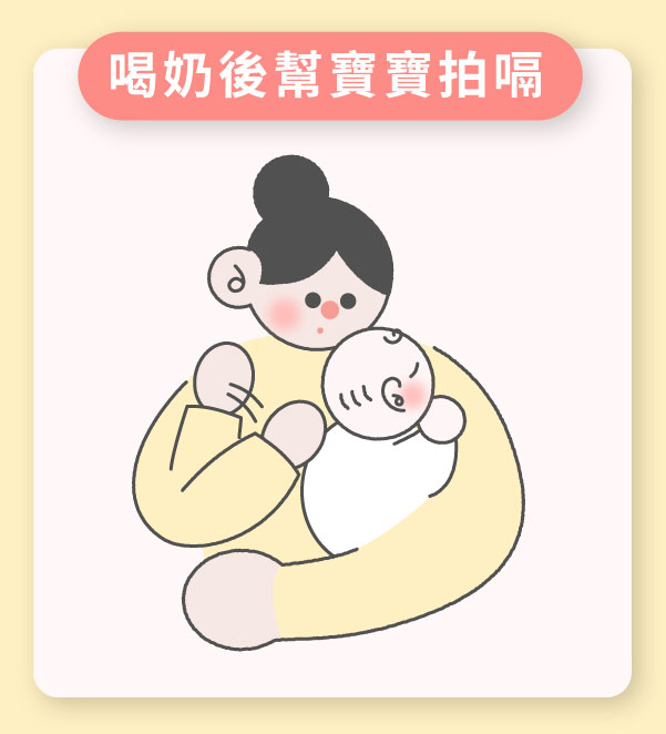 - 喝奶後打嗝:餵奶中間或是餵奶後輕拍寶寶背部
