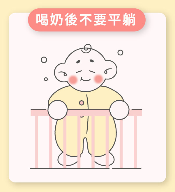 - 喝完奶後避免立刻平躺,以直立方式抱著寶寶約 15 分鐘,降低吐奶機率