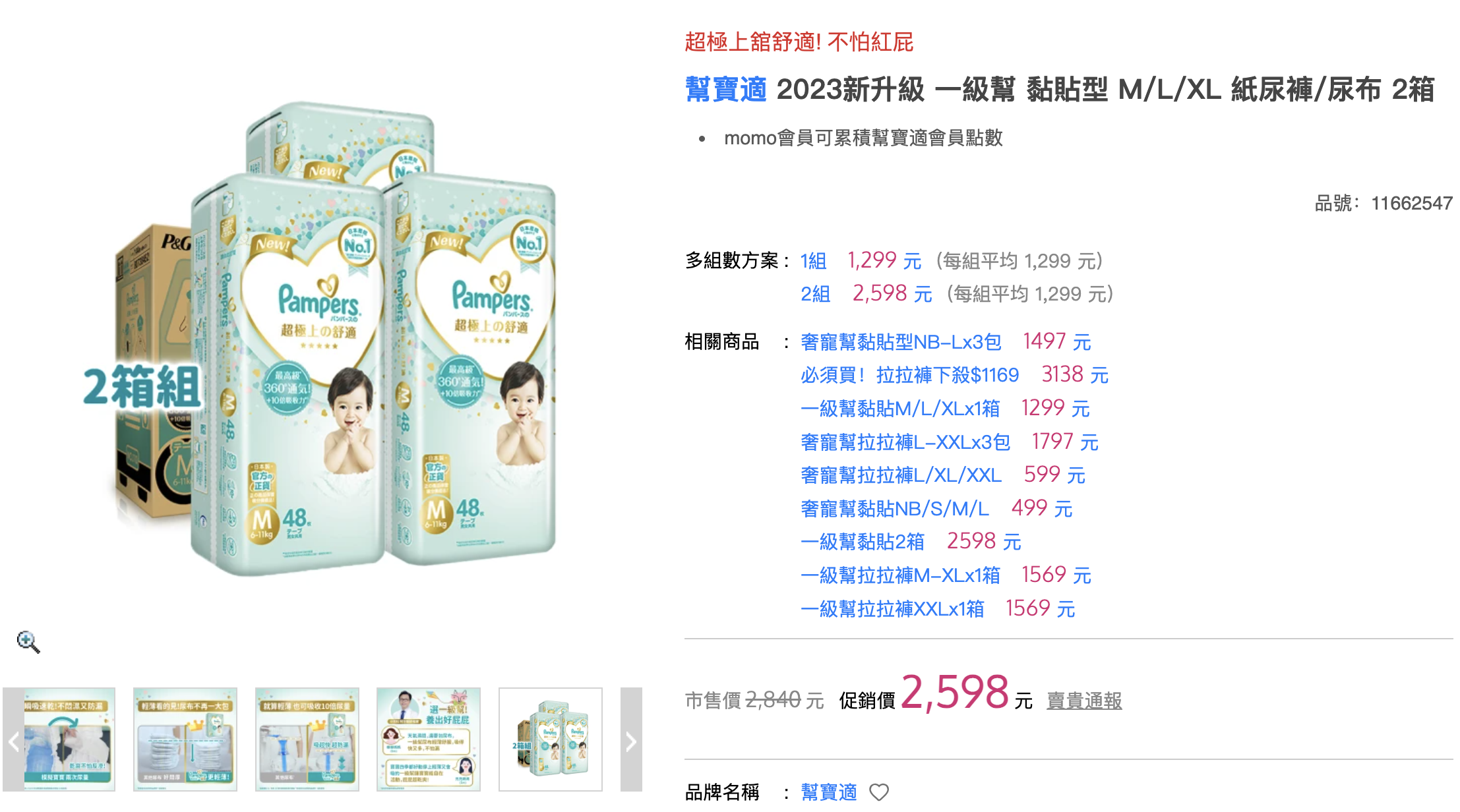 - 推薦商品:一級幫 黏貼型 M/L/XL 紙尿褲/尿布 2箱